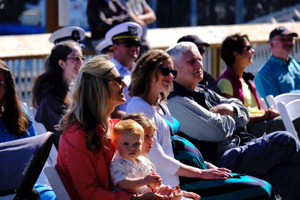 Homer residents and tourists walking past the newly constructed Boathouse lingered to observe the official change-of-command ceremony, but the front row seats were reserved for Passic’s wife Laura and his father Ted, and Leggett’s wife Brandy, daughter Arial, 5, and son Harbor, 1.