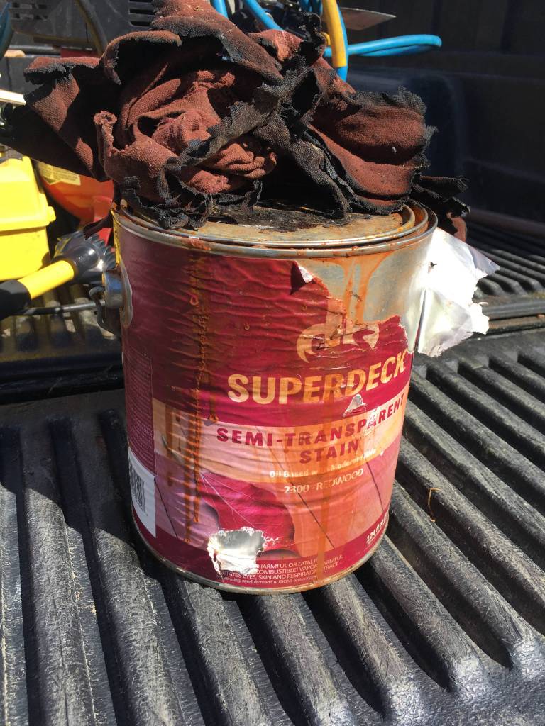 Spontaneous combustion caused the rags to smolder, Kadel said. That happens when a chemical reaction in material saturated with paint or stain starts heating up the fabric.