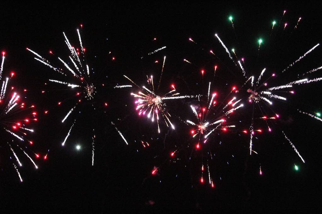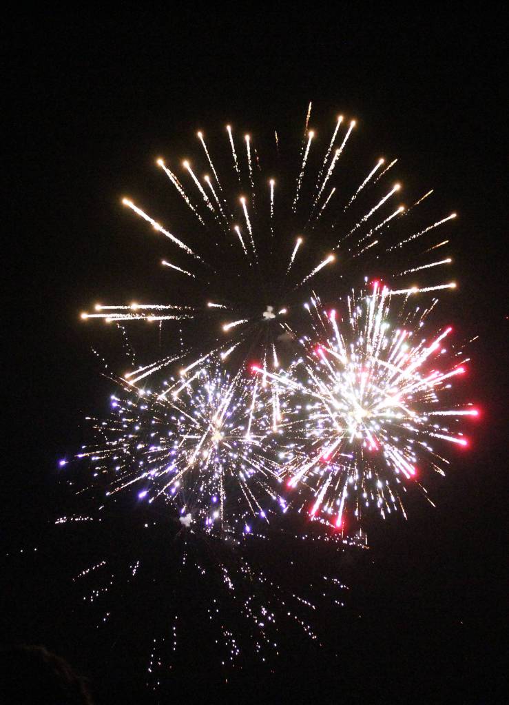 Fireworks explode in the sky above Mariner Park on New Year’s Eve, Dec. 31, 2018 in Homer, Alaska. (Photo by Megan Pacer/Homer News)