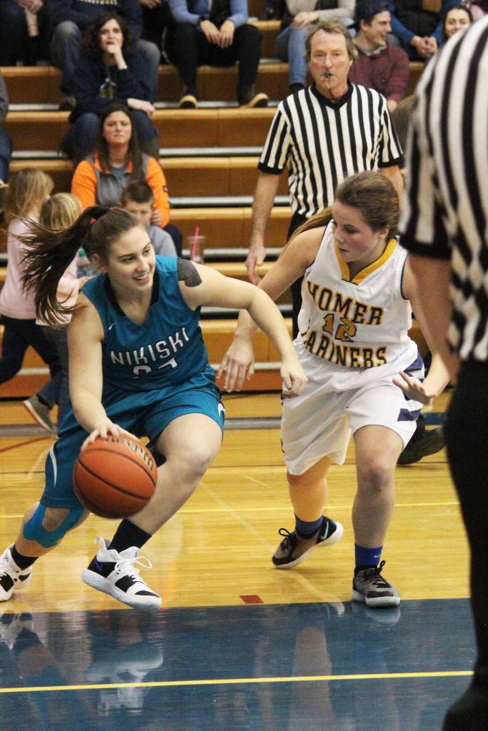 For the boys, Nikiski’s Michael Eiter nailed a big 3-pointer with about 20 seconds left in the game. Jace Kornstad had 15 points for Nikiski, and Noah Litke scored 10. For Homer, Clayton Beachy and Daniel Reutov each had 12 points.