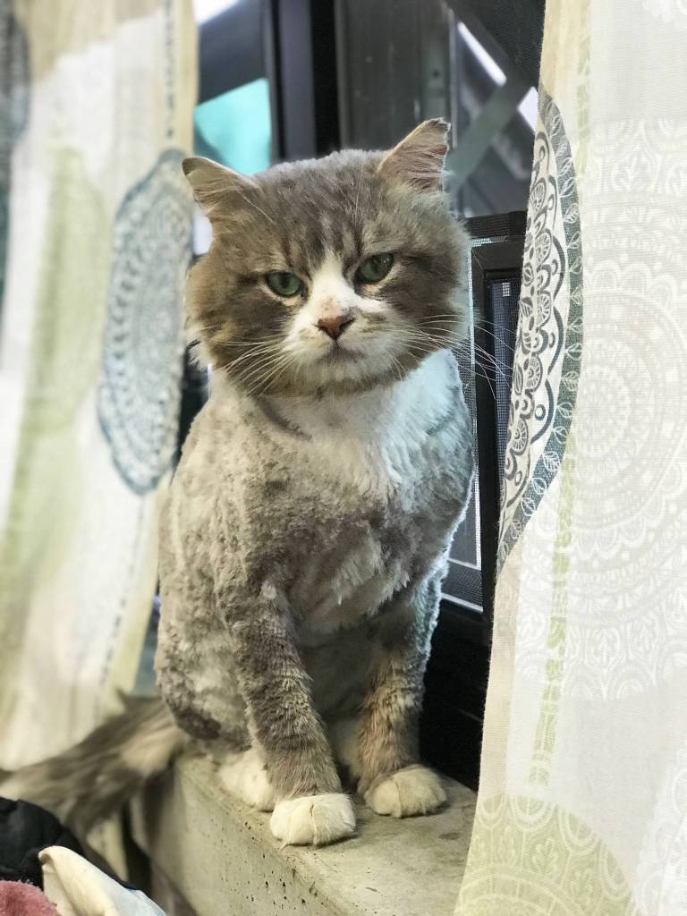 From the dumpster to the beauty salon — Blair got his hair did! This sweet guy is a brand new cat without all those painful mats. He rolls around on his back and is even more full of love to give. He’s vocal, and sweet, and prefers to be indoor/outdoor. Need a kitty to get rid of varmints by day, and then snuggle up by night? This guy is perfect. He’s had a rough life so far, but shelter staff have assured him it will only get better from here on out. Come and meet Blair and all the lovely kitties today. We’ve got something for everyone!