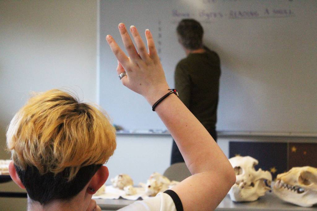 Standing behind a table laden with animal skulls, Lee Post asked the youngsters to think about all the different ways in which a person can “read” a skull. Post, known locally at the Bone Man, teaches skeletal articulation at the college.
