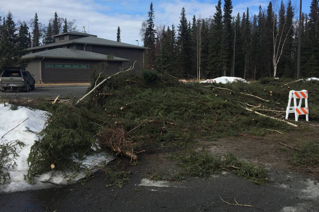 With that in mind, the agencies working on the Sterling Fuel Break teamed up this year with the Kenai River Center to launch Spruce for Salmon in earnest. Black spruce trees that had been cleared during the last week of March were made available for free at the Kenai River Center for private homeowners to use in their stream bank protection projects.