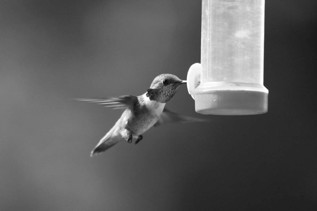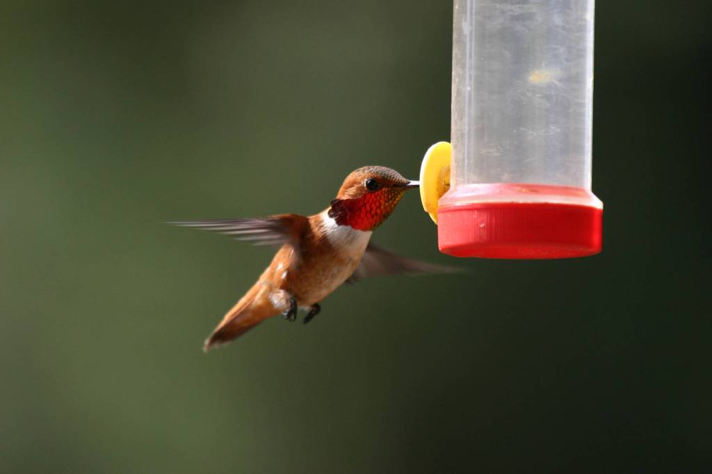 A rufous hummingbird sips nectar from a feeder in this undated photograph. (Photo by Carla Stanley)