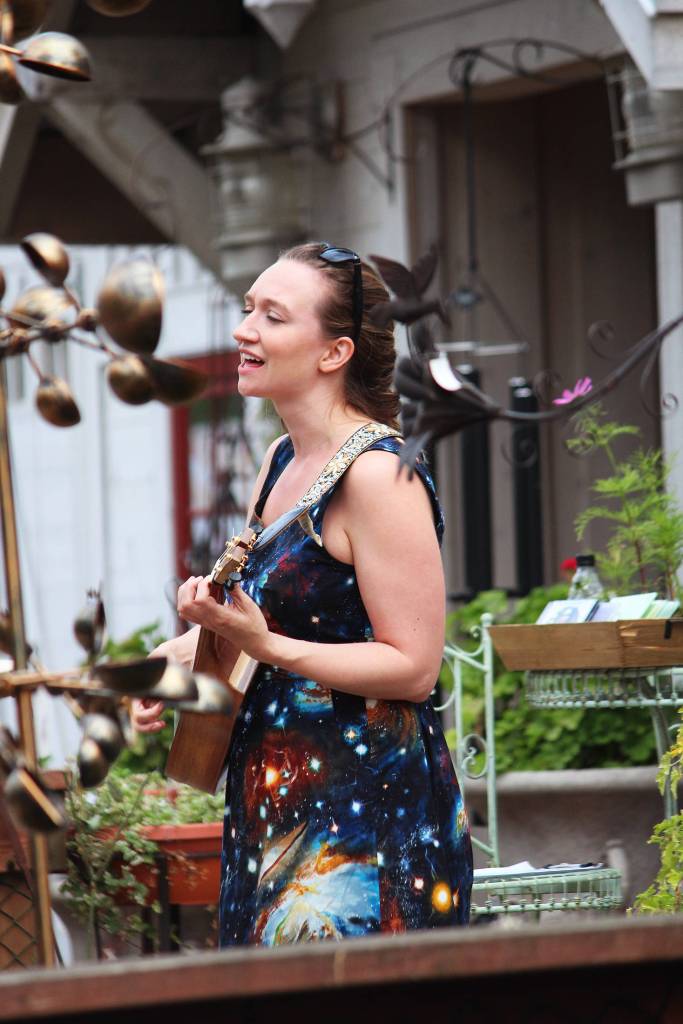 LEFT: Emily Anderson performs in front of Thyme on the Boardwalk on Friday, June 21 as part of a round of street performances during the Seldovia Summer Solstice Music Festival in Seldovia. (Photos by Megan Pacer/Homer News)