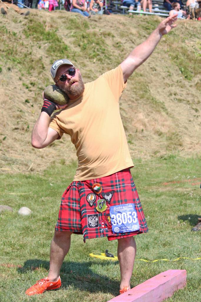 Chris Moore, who’s been throwing for six years, also competed in the Kachemak Bay Highland Games for the first time on Saturday. He also judged the Alaska Scottish Highland Games in Palmer last weekend.