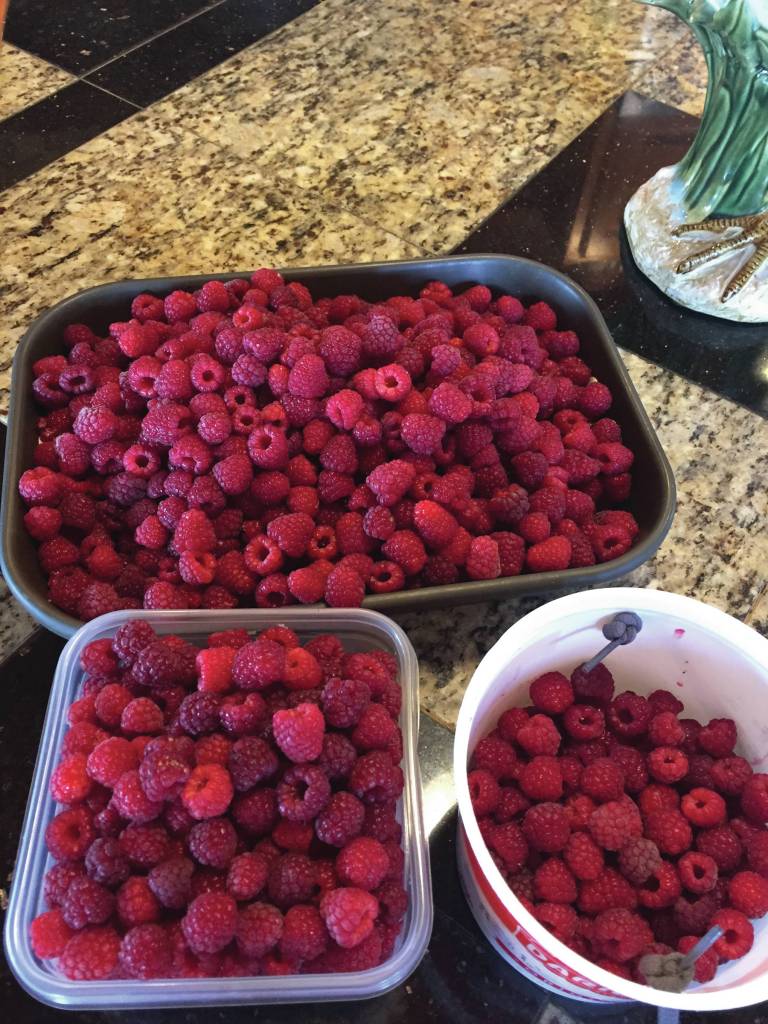 What in the world are we all going to do with all the raspberries we picked and froze? Make wine? Maybe eat a raspberry smoothie every morning? Last year the raspberry patch decided to take a little break and the precious supply we had was used sparingly and only for special recipes. What a different situation we are in this year.