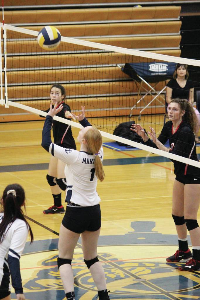 The Kardinals won the Southcentral Conference match 3-0 in three close, intense sets during the last home game for the Mariners — the last time the team’s four seniors (Kelli Bishop, Karmyn Gallios, Kitri Classen and Marina Carroll) would take to their home court.
