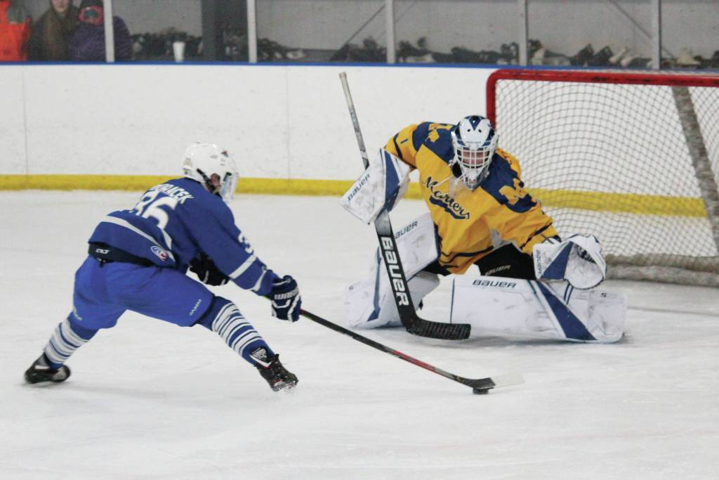 The Mariners took the game with a 5-2 victory over the Moose in Railbelt Conference action at the Kevin Bell Arena in Homer. In a penalty-heavy game, both teams started out slow with no points getting on the scoreboard until the second period when Homer freshman Jett Allen netted a goal with an assist from senior Ethan Pitzman less than a minute into the second period.