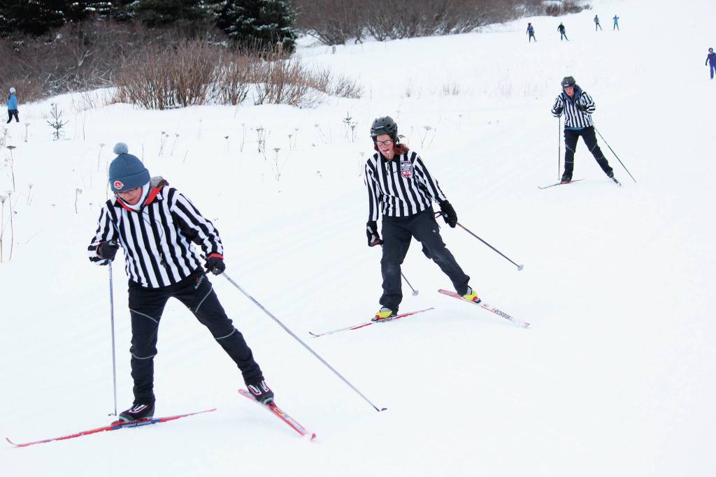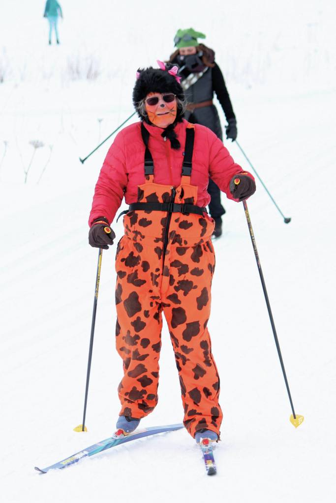 Unlike others across the state, the Homer Ski for Women is not a timed event, and the only prizes are for creative costumes. The race is technically two loops around the Hayflield Loop at the Lookout Trails, but race organizer Kris Holderied told participants on Sunday that they could ski the loop as few or as many times as they liked.