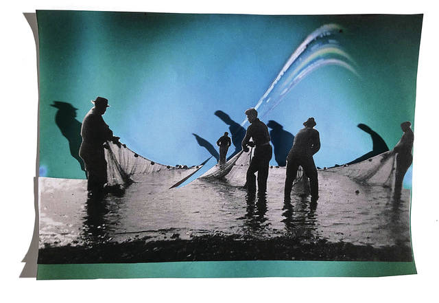Homer artist Thorey Munro describes her work as “a conversation with the inner lives of landscapes, bodies, light and time. The collages in ‘Sea-change’ are a conversation with the ever-shifting tidal, seasonal, surreal, and sleep-deprived river landscapes of Bristol Bay. The collage process illuminates an underlying entanglement of water, light and life. I cut and fit photographs of my own with historical images to see nonlinear time as a place to dream about future. The images loosen up associations of form and meaning, scale and time, and tease out new connections from existing materials.”