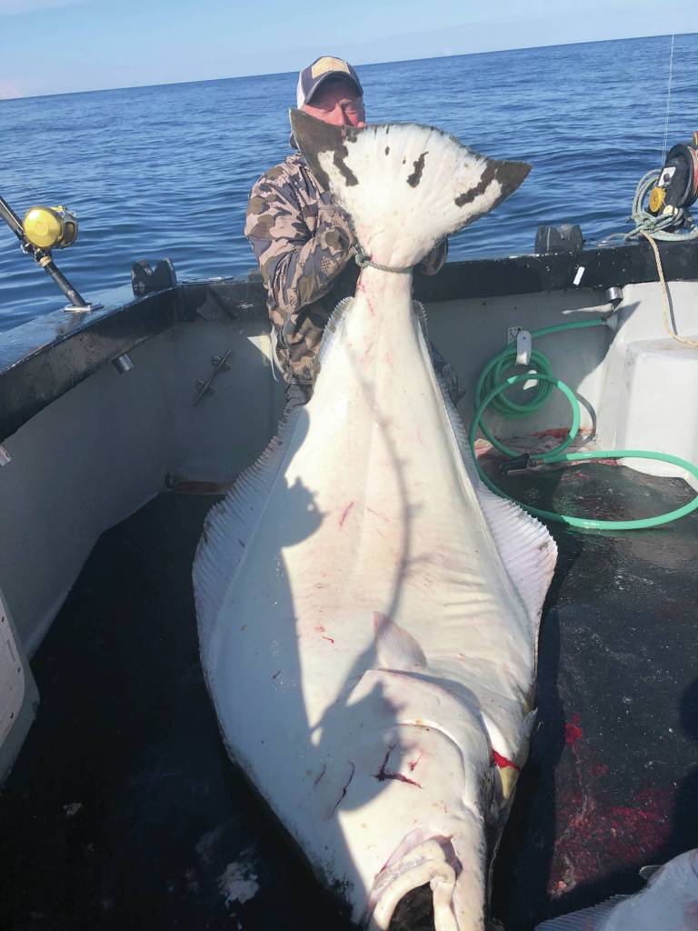 A monster halibut caught on May 3 by Chris Giegerich would have been a contender last year — if not an outright winner — in the former Homer Chamber of Commerce and Visitor Center Jackpot Halibut Derby. But with the derby ended, and sport charter fishing restricted with COVID-19 pandemic guidelines, the halibut itself is the reward.