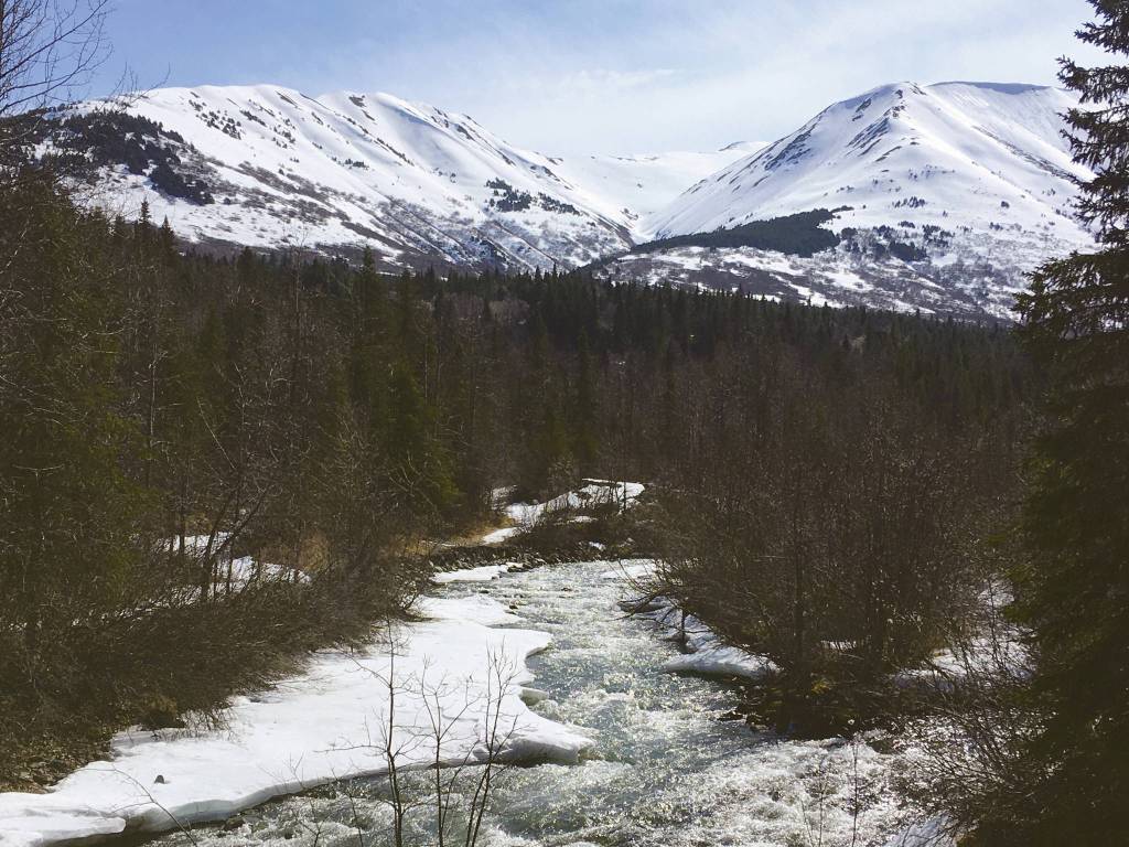 Mills Creek on April 29, 2020 in the pass between Cooper Landing and the Turnagain Arm. (Photo by Jeff Helminiak)