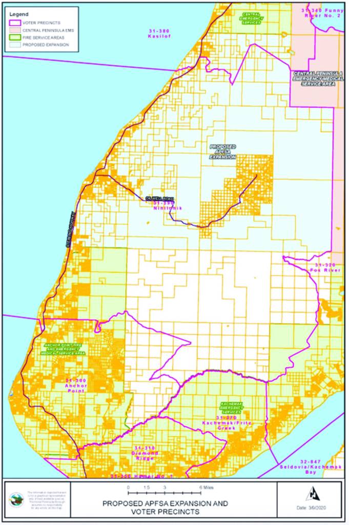 Nikolaevsk is currently served by the Anchor Point Fire and Emergency Medical Service Area, which maintains a fire hall in that community. It would continue to be covered by a joint service area.