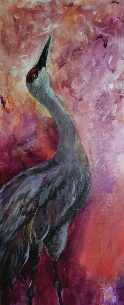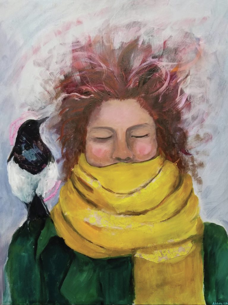 Abbey Ullen writes that birds have been a constant in her life, and a reminder of hope. While working on these pieces she was reminded of the times in her life that feathered friends have given her assurance. In this show she highlighted some of her favorite friends and tried to evoke a feeling of hopefulness and joy through bold colors and expressive mark making. Some works are done with oil to achieve the amazing action and textures that she has always admired about birds.