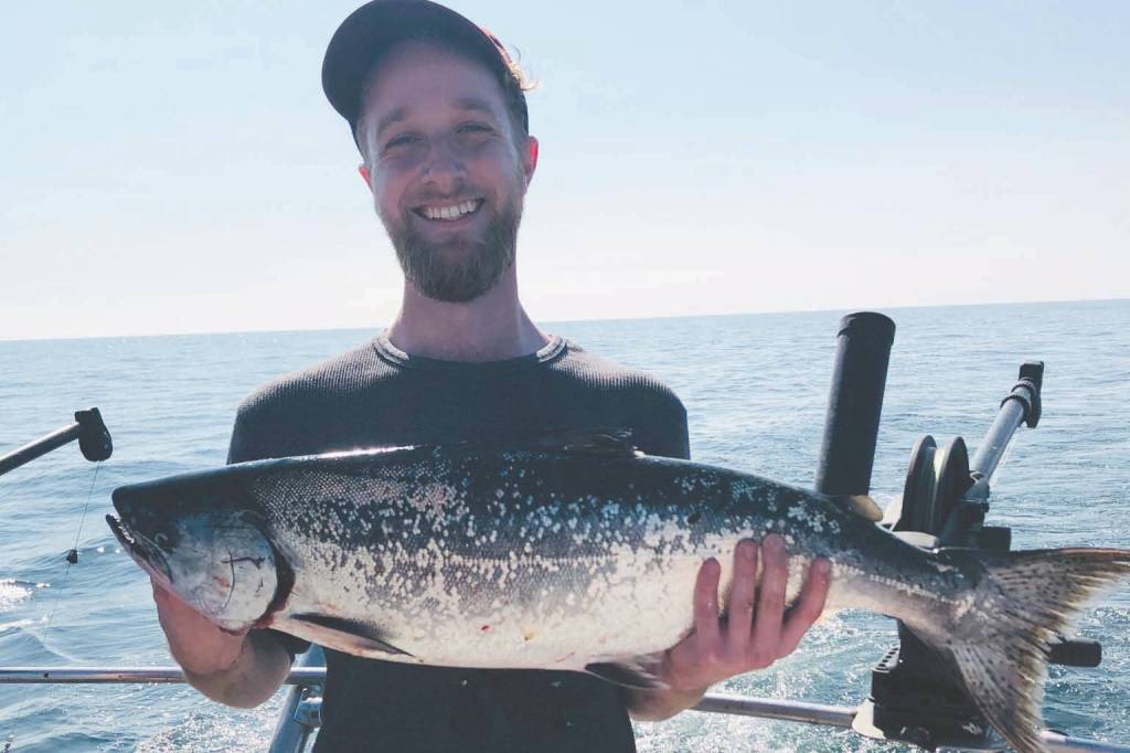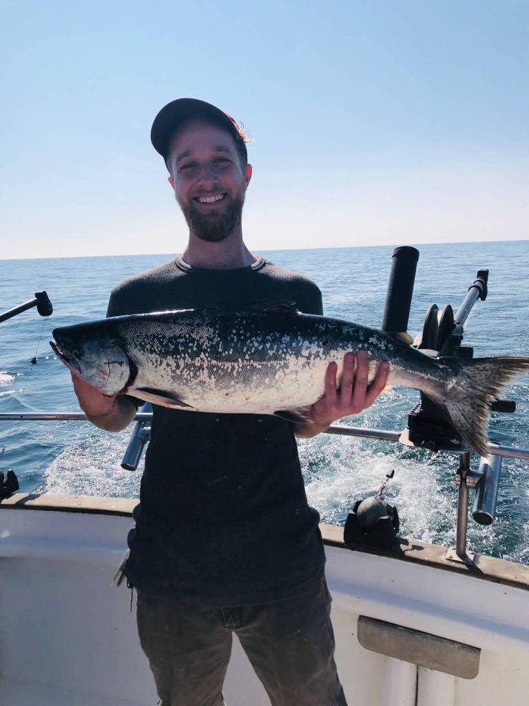 The author holds a king salmon caught on Aug. 16, 2020 in Kachemak Bay near Homer, Alaska. (Photo courtesy Lizzie Byrne)