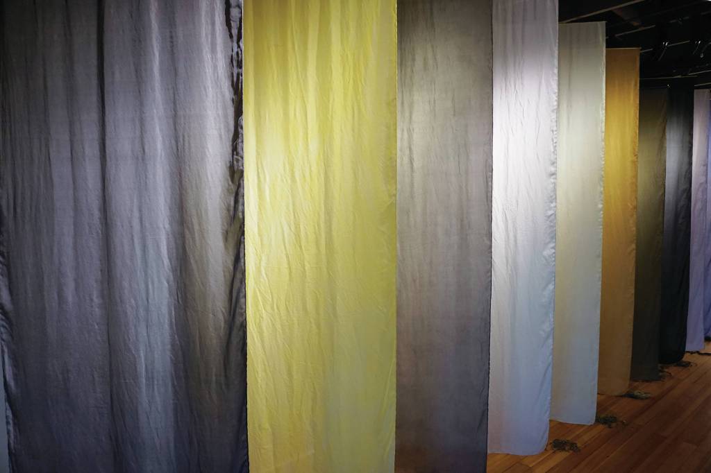 While dazzling in its colors, “Swatches” also works as a really cool science project. It asks and answers the question, “What kind of organic dyes and colors can you get from southern Kenai Peninsula plants?” Pettibone pitched the idea for the exhibit to Bunnell, and started on it in May 2019 after the gallery gave her the green light.