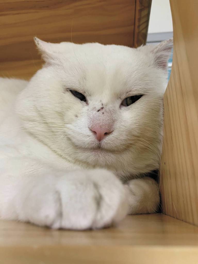 Introducing Palmer, “the strong silent type.” He’ll be up for adoption soon, but first he needs to have eye surgery. His right eye was injured at some point, and it never healed properly so now it needs to be removed. It won’t stop him from enjoying life, though; he’s used to vision out of one eye only. In fact, it will only make things better for him. He used to live outside, and therefore will need to find a family that allows him to be an indoor/outdoor cat. Since he’s been with the shelter, he has been quite shy and reserved but open to all the affection showered on him. So stay tuned for Palmer updates.