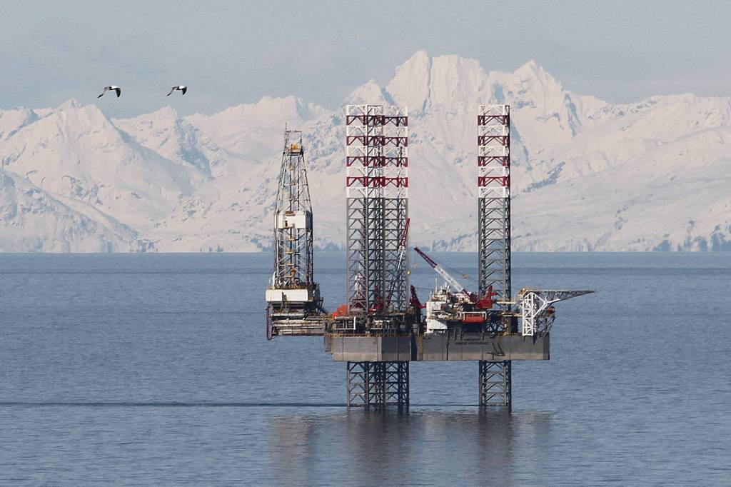 The Endeavour-Spirit of Independence jack up rig is seen here in early April 2013, at the Cosmopolitan site in lower Cook Inlet near Anchor Point, Alaska. (Photo by Brian Smith/Peninsula Clarion)