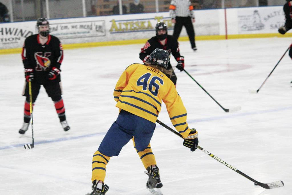 Homer created a 2-0 lead after the first period in the game against Kenai on Friday, with goals by Casey Otis, assisted by Fiona Hatton, and Kazden Stineff, assisted by Hunter Green and Oits. The Kardinals were able to close the gap with a second-period goal from Blake Bucho and a third-period goal from Tucker Vann.