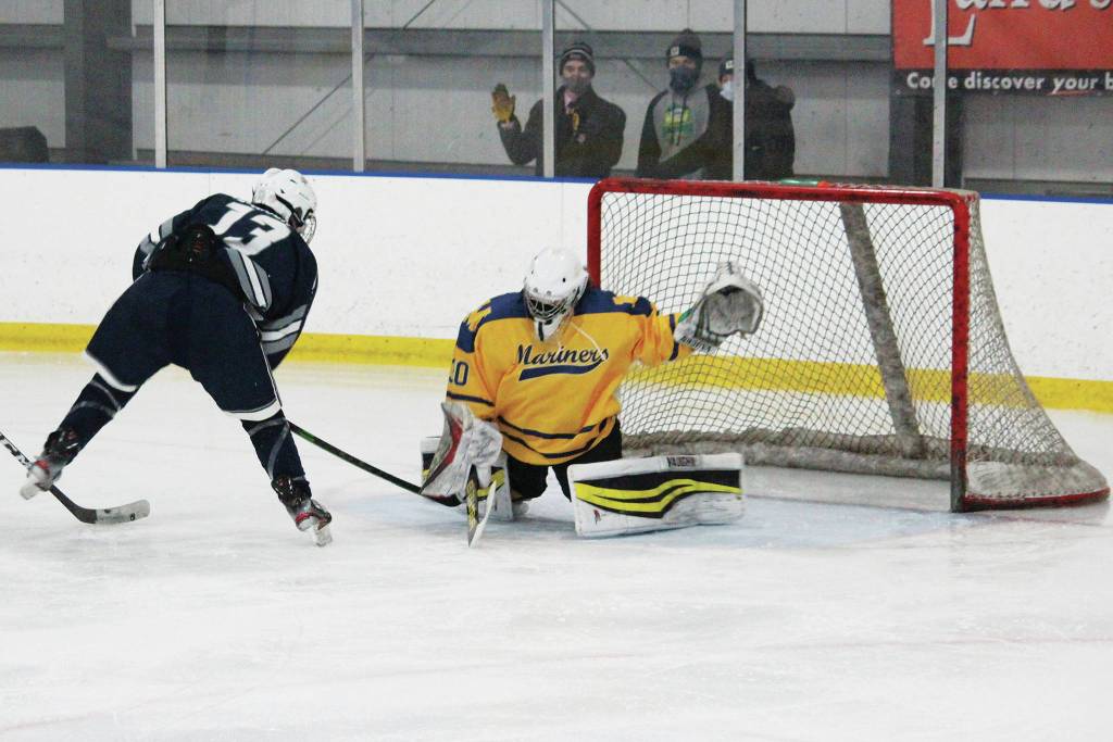 Homer goaltender Keegan Strong had 37 saves out of 40 shots, while Kenai goalie Tommy Baker had 20 saves out of 22 shots by the Mariners.