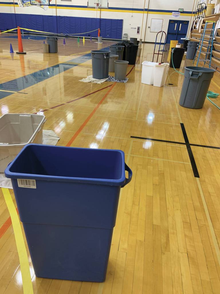 “We had two hallways that had leaks. We have about 40 to 45 leaks in the gym,” Waclawski said, describing the recent leaks. “… We have huge leaks in the library, we have leaks in my office.”