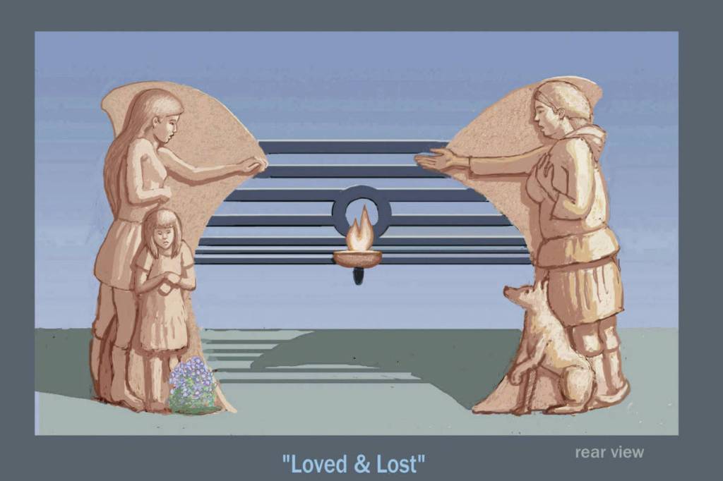 Homer artist Hughes previously created a memorial bench at Land’s End Resort to honor Jean Keene, known as “the Eagle Lady.” His public art uses a concrete composite that is durable and weather- and vandal-resistant. To build “Loved & Lost,” he will sculpt the supporting figures in clay, and then coat it with liquid rubber to make a permanent mold. The molds will be filled with a concrete composite reinforced with glass fibers called Trinic. The bench will include space for bronze dedication plaques. The rubber molds can be used for additional castings, Hughes wrote in the press release. “Loved & Lost” will go beyond the traditional bench of wooden planks with cast-iron supports.