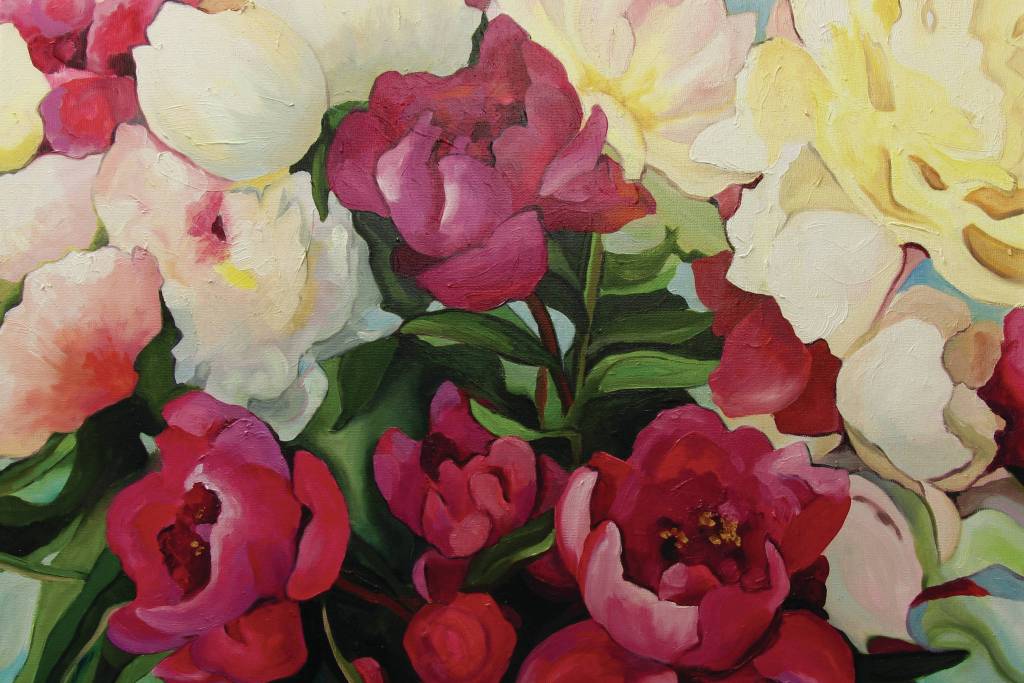 “I had these amazing flowers growing in my home all the time,” she said. “I started photographing, and then I started painting them. … I love painting the peonies.”
