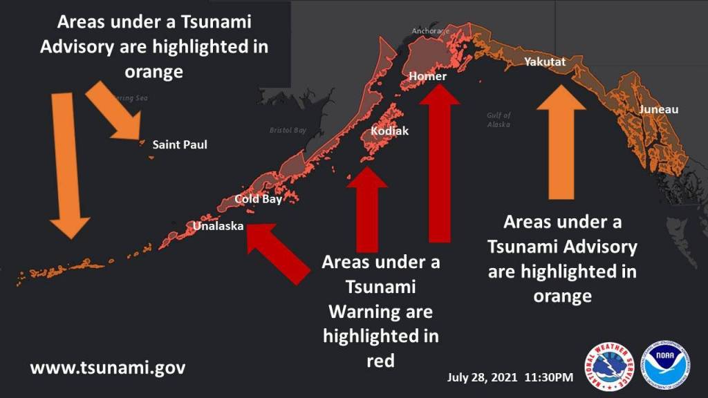 The tsunami warning was issued after a magnitude 8.2 earthquake rattled the Aleutian Island chain at around 10:15 p.m. Wednesday night, about 64 miles southeast of Perryville, according to the Alaska Earthquake Center. The quake sent shock waves through towns on Alaska’s Gulf Coast and triggered the tsunami warning in the Aleutian Islands, Kodiak, the Southern Kenai Peninsula and other towns across the state.