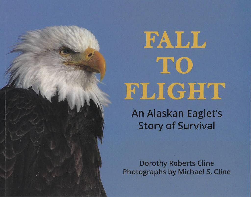 “Fall to Flight” tells the story of a bald eaglet that got injured when the tree holding its nest fell over in the summer of 2012 near the Cline family home on the bluff near the mouth of Fritz Creek on Kachemak Bay. School teachers in rural Alaska and Homer, Dotty and Michael Cline moved to their home in 1989. For 32 years, Cline has watched eagles nesting near her home and other nests along the beach.