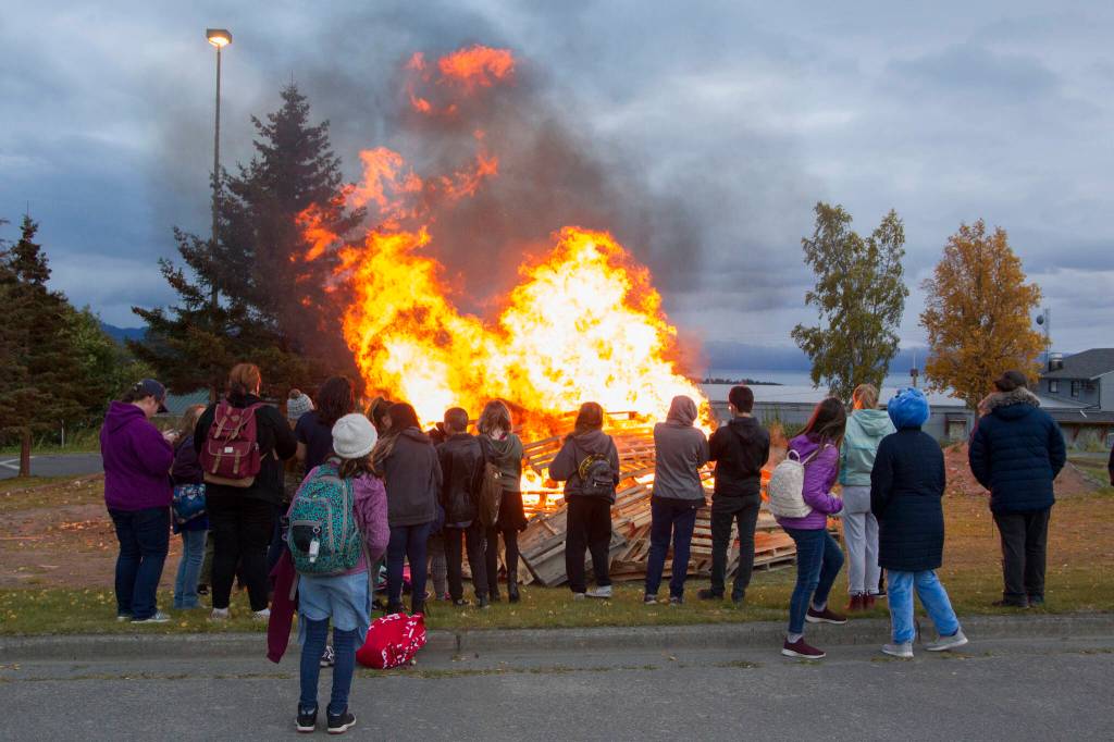 Homer High School hosted a bonfire in the lower parking lot for students to enjoy after the homecoming parade Friday, Oct. 1. (Photo by Sarah Knapp/ Homer News)