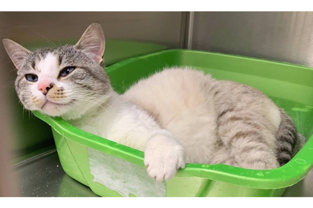 Laramie is a sweet 1-year-old boy who came in as a stray. He’s been so friendly from the moment he was found. He’s gentle and affectionate and loves people. We don’t know how he is with other animals, but he’s a very cool cat, and with slow introductions, he should be able to adapt. Just look at him laying back as if on the beach. Open your heart and home to Laramie and you won’t regret it. He is full of love to share! Give this sweet cat a chance and call us to set up a time to meet him.