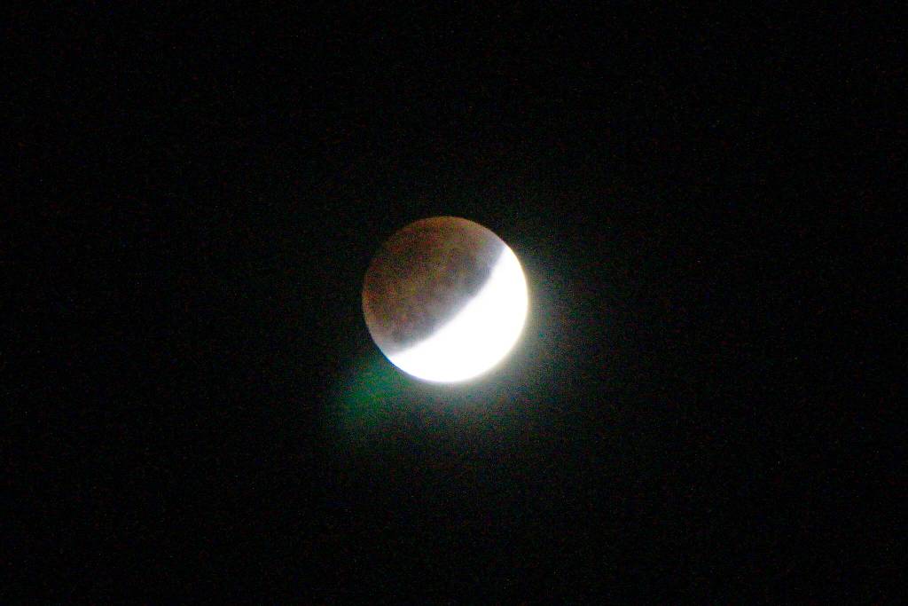 The moon is about halfway through an eclipse at about 11:20 p.m. on Thursday, Nov. 18, 2021, as seen from Diamond Ridge near Homer, Alaska. (Photo by Michael Armstrong/Homer News)
