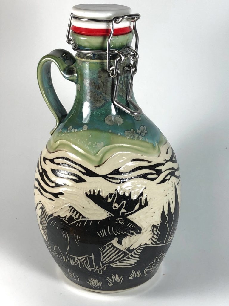 “In my past life, I was a field biologist, carpenter, and science teacher. I started my adventure in clay 13 years ago as a curiosity,” Szarzi writes of his work. ‘My surface designs reflect my love for the outdoors; themes include imagery of animals, plants, and the landscapes that catch my eye. All my images are hand drawn and carved, then combined with glazes that are designed to complement the subject.”