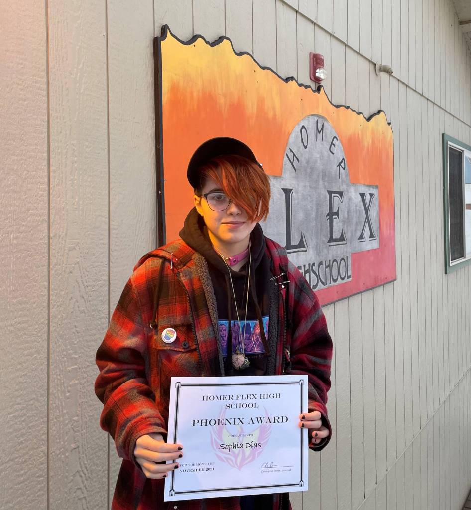 The November recipient of the Homer Flex High School Phoenix Award is Sophia Dias.