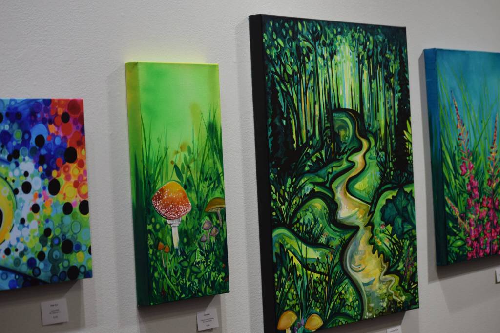 Her pieces showcase brilliant orange sunsets, lush-green forests and deep blue mountainscapes, among other scenes.