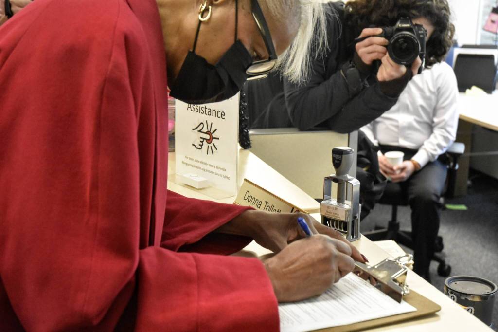 “Alaskans have a choice now,” Gray-Jackson said as she finished her paperwork, which she filed at the Division of Elections offices in Juneau. Holding back tears as she spoke to reporters following her filing, Gray-Jackson said public service was her passion and she looked forward to reaching out to Alaskans.