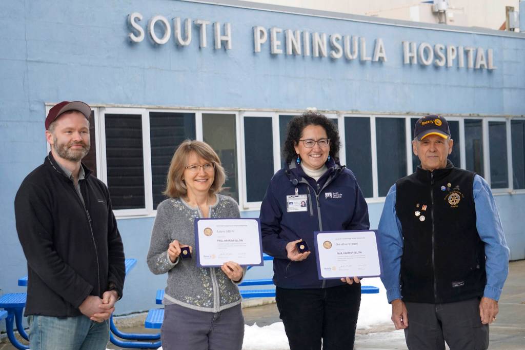 Derotha Ferraro, the hospital’s Public Information Officer, and Laura Miller, the hospital’s laboratory director, were honored by the Rotary Club of Homer-Kachemak Bay as Paul Harris Fellows for their commitment to healthy communities.
