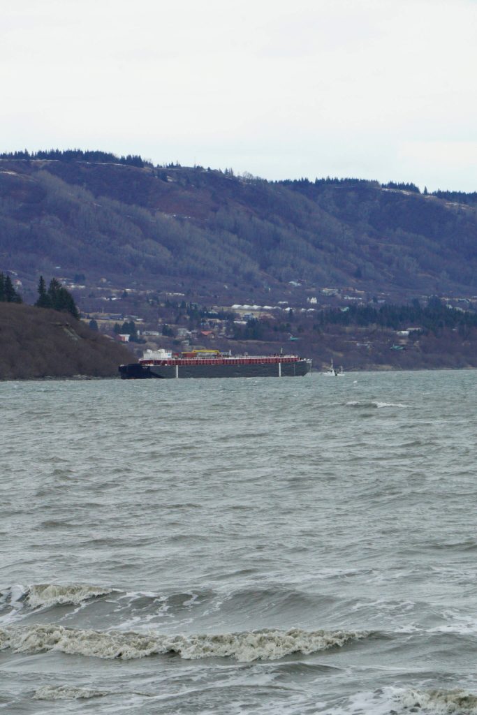 Hawkins said he first learned of the Redoubt breaking loose about 11 a.m. Thursday morning when he got a text from someone at Northern Enterprises Boat Yard on Kachemak Drive saying “Is that barge supposed to be over here?”