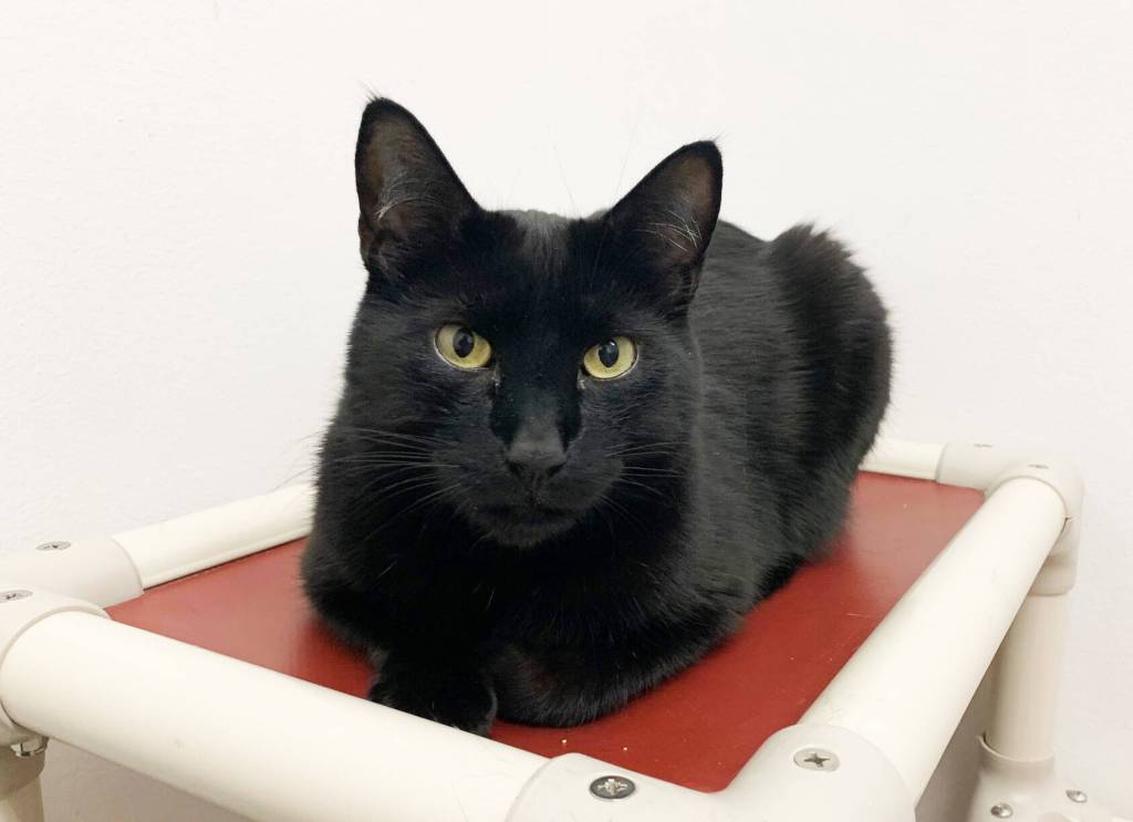 Pesto is a stunning 5-year-old male cat with a great personality. He’s lived with cats and dogs before and could again, depending on their connection of course. He is black with a little white under his belly. He reminds us of Bagheera: strong, beautiful and with a big heart. He loves treats and head scratches. He’d love to be a part of your family, if you are interested, please give us a call at 907-235-3141.