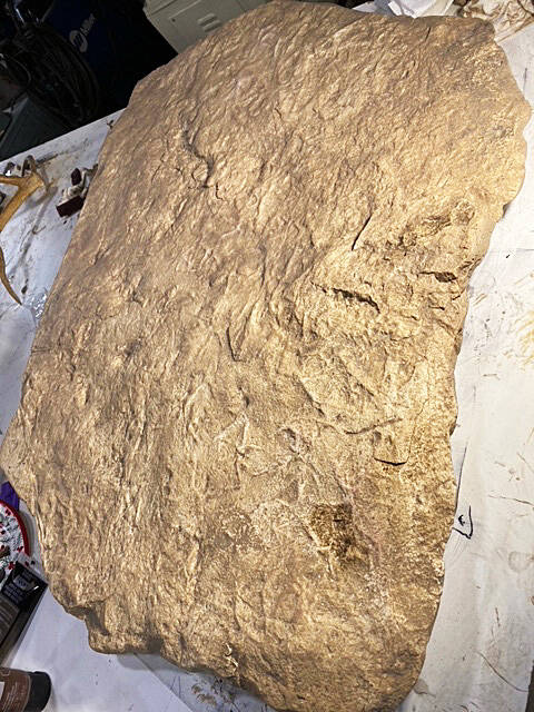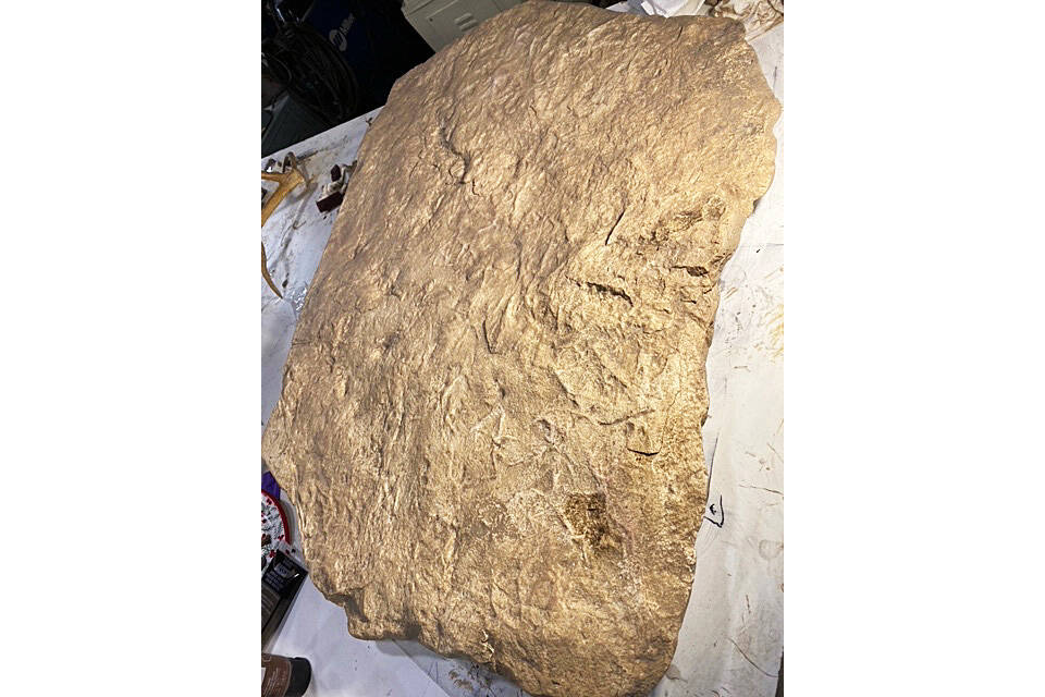 Friend said it took about three hours to wrestle the rock into the back of a pickup truck. They had to place plywood under the slab and winch it into the truck on ramps. The original fossil rock now is at the Museum of the North, and Druckenmiller made a study cast that the shorebird festival displays.