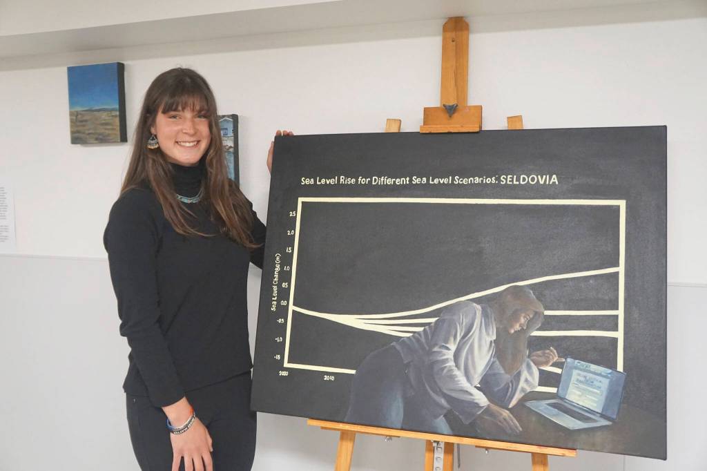 The exhibit by Kate Lochridge, a Bowling Green State University, Ohio, fourth-year student, came about after her internship this summer as a National Ocean and Atmospheric Administration Ernest S. Hollings Scholar and Artist in Residence. Now back in Ohio with her paintings, Lochridge’s show went up for just one night. For those who missed the pop-up show, on Aug. 24, from 12:30-1:30 p.m. Alaska time, Lochridge presents a webinar on her internship, with photographs of her paintings, sketches and installations.