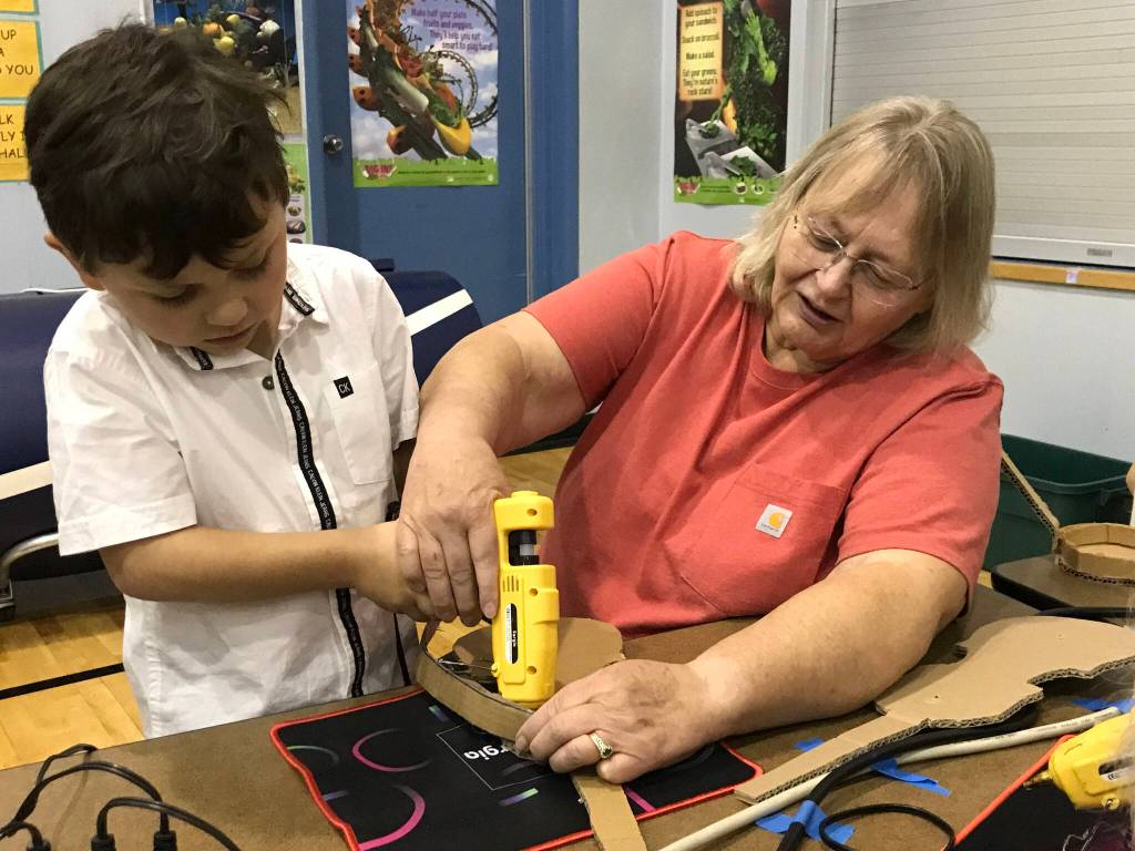 A Chapman Elementary student makes a cardboard violin (courtesy photo)