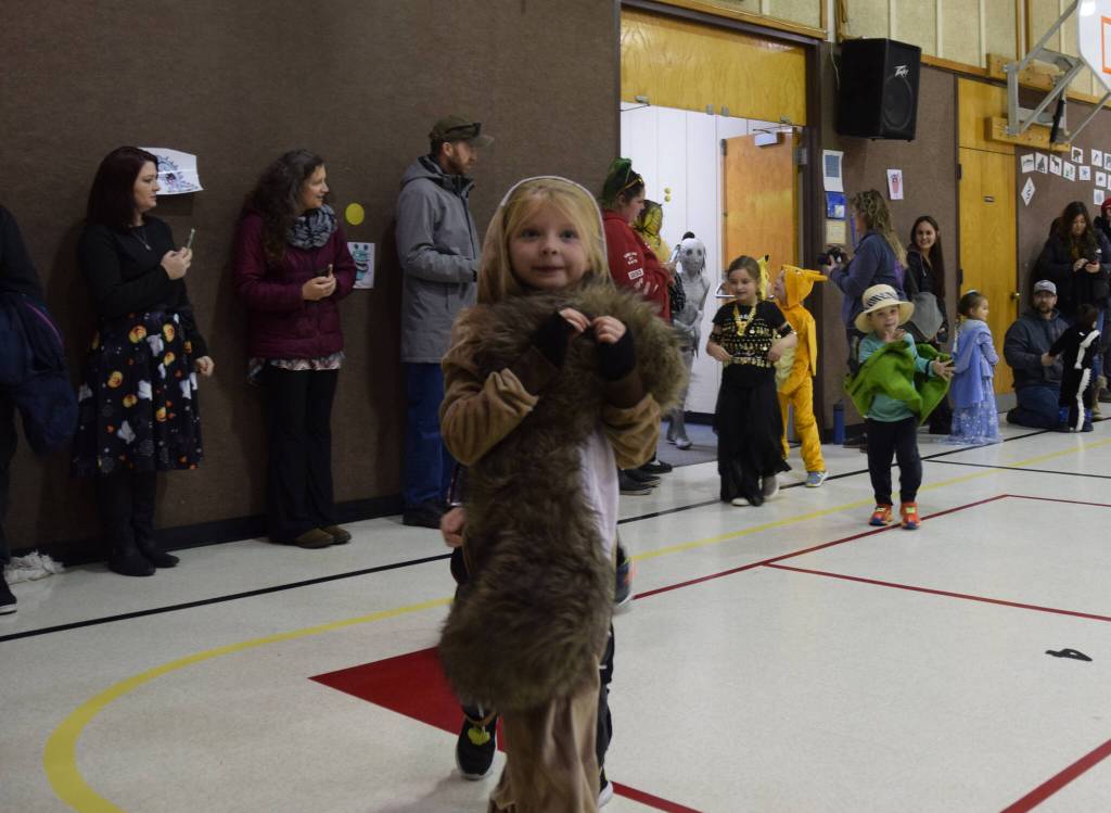 Selma Johnson, a first grader at Paul Banks Elementary, dressed up as a squirrel this year. “What I like about Halloween is I get candy,” Selma said. “I like Twix.”