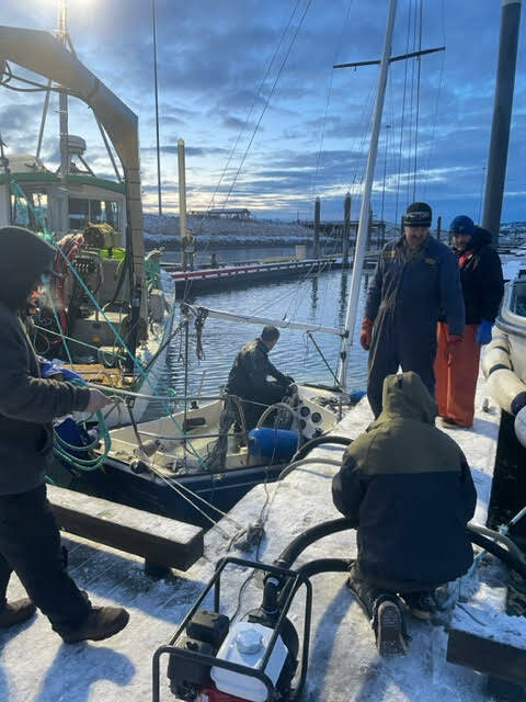 Homer Harbor crew and team salvage submersed sailboat