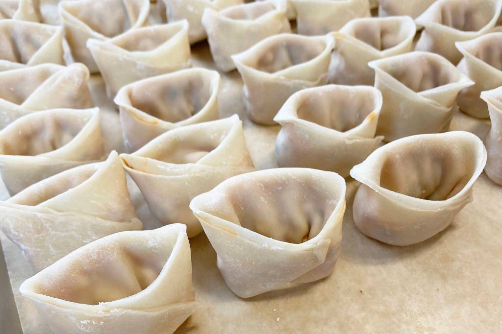This vegan kimchi mandu uses crumbled extra-firm tofu as the protein. (Photo by Tressa Dale / Peninsula Clarion)
