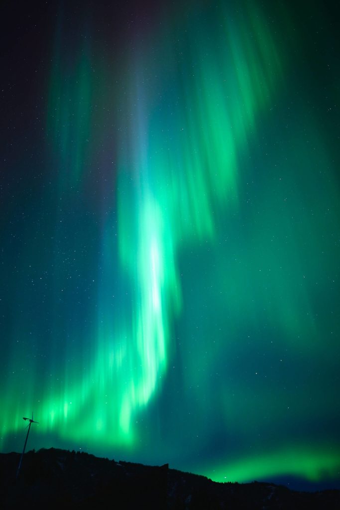 The aurora borealis can be seen overhead from East End Road on Sunday.