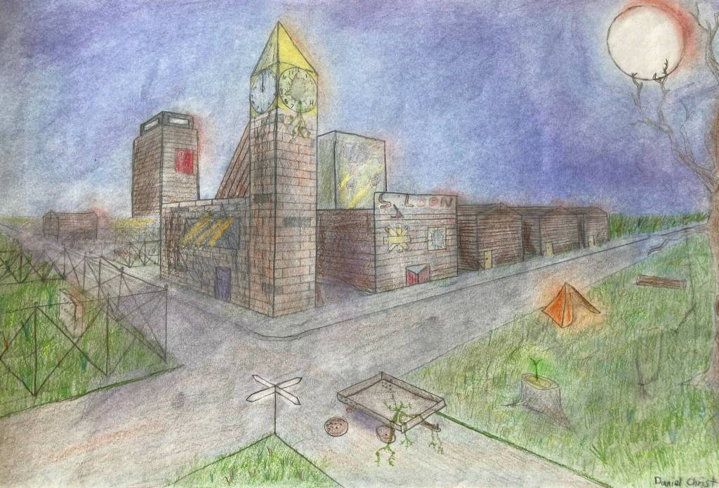 Color drawing by youth artist Daniel Christ, on display at Homer Council on the Arts. Photo provided by Homer Council on the Arts.