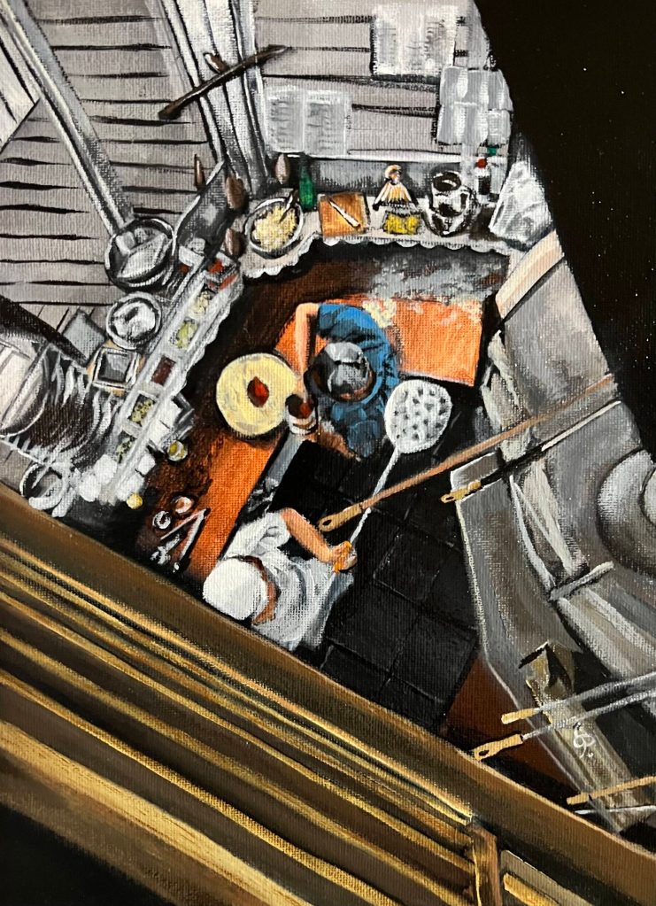 “Finn’s” by Emily Camacho. Acrylic on canvas painted in 2022, on display at Fireweed Gallery.