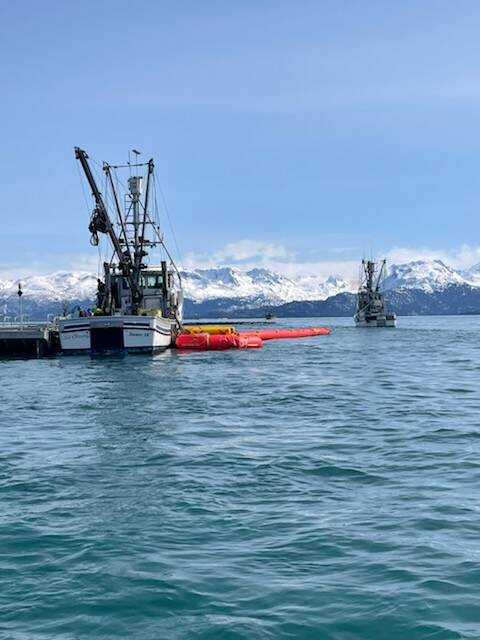 On Friday, approximately 20 local fishing boats were on Kachemak Bay for the water equipment component of training. Boats participating in the training practiced with gear onshore before deploying skimmers, booms and other equipment from their vessels.